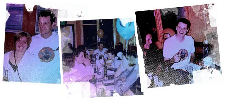 Back in October 1999, the Ant Lib organised its first full (bathroom) function as an aftershow party for that year’s annual Adam Ant Convention (then hosted by Antics in the 90s). Members grabbed 1980-82 Adam & the Ants drummer Terry Lee Miall for tasty grub and gossip at London’s Rock Garden (RIP).