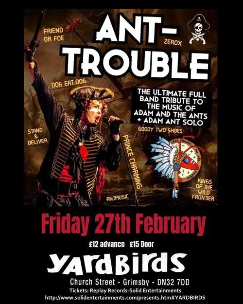 The UK’s Number 1 Adam and the Ant’s tribute band, also performing Adam Ant’s solo material. ANT-TROUBLE are South Wales premier tribute band to the music of Adam Ant and Adam & The Ants. Performing all of the big hits, awesome album tracks and exciting b-sides from the complete back catalogue of Ant Music.